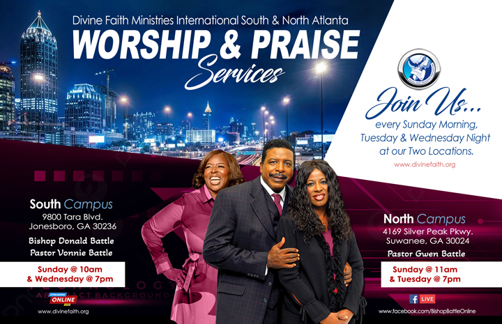 Welcome to Divine Faith Ministries International, where the vision of this ministry is to glorify God, display Christian love and unity by putting God first in all that we do. We have positioned ourselves to be a training ground for disciples of Jesus Christ to advance the kingdom of God through the power of the Gospel.