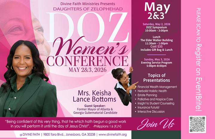 Welcome to Divine Faith Ministries International, where the vision of this ministry is to glorify God, display Christian love and unity by putting God first in all that we do. We have positioned ourselves to be a training ground for disciples of Jesus Christ to advance the kingdom of God through the power of the Gospel.